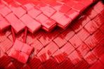 Ein rotes Highlight ist hier aus zwei verschiedenen roten Papieren entstanden. Deckel und Ecken sind aus einem unifarbenen Papier und rahmen das rote Papier mit feinen roten Streifen ein. Kombiniert ist die Clutch mit einer silbernen Trägerkette.