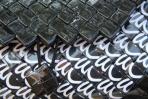 Flyer einer Veranstaltung Summerjam wurden für diese Tasche verwendet. Das Papier wurde so geknickt, dass das "a" zu sehen ist. Die Ecken und der Deckel sind in unifarbenem schwarzem Papier abgesetzt. Natürlich hat die Clutch eine schwarze Trägerkette.