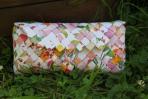 Auf weißem Hintergrund sind hier Make up, Früchte und Kräuter zu sehen. Sie hat eine silberne Trägerkette.