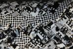 Hier wurden verschiedene Scherenschnitte zur Tasche verarbeitet. Bei näherer Betrachtung kann dies an den verschiedenen Ausschnitten erkannt werden. Durch die karierte Deckeleinrahmung und den passenden Knopf wird die Struktur der Tasche hervorgehoben. Durch die Farbgebung ist diese Clutch sehr klassisch und überrascht jeden Betrachter bei näherer Betrachtung. Diese Clutch hat eine schwarze Trägerkette.