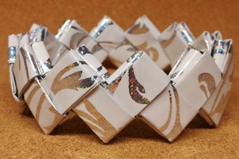 Durch die Verarbeitung von beschichtetem Papier haben diese Armreifen einen hohen Tragekomfort: Sehr leicht und sofort warm. Außerdem sind sie sehr flexibel und erlauben Ihnen dadurch Ihren Armreifen auch einfach zu wenden. Sie entscheiden welche Seite Sie außen und somit zur Schau tragen.