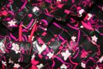 Nicht nur elegant, sondern auch feminin verspielt gibt sich diese Clutch. Auf schwarzem Grund sind hier pinke Schnörkel mit hellrosafarbenen Blümchen zu sehen. Diese Motiv macht diese Clutch schon auf den ersten Blick zum Eyecatcher. Passend zum schwarzen Hintergrund hat die Clutch eine schwarze Trägerkette und lässt sich sowohl zum Abend-, Cocktailkleid als auch zu Jeans.