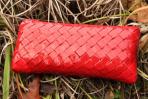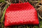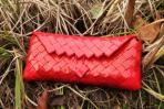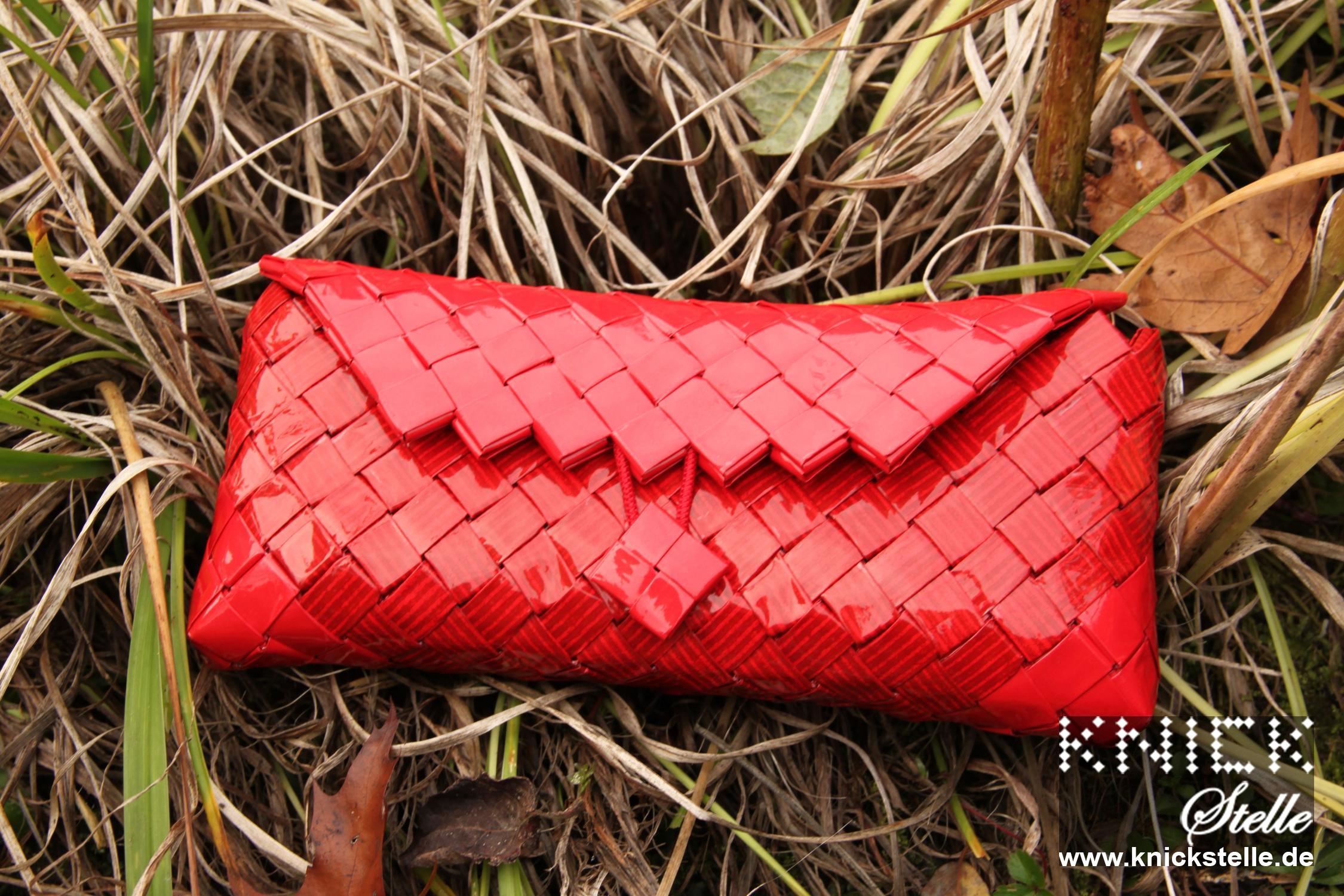 Ein rotes Highlight ist hier aus zwei verschiedenen roten Papieren entstanden. Deckel und Ecken sind aus einem unifarbenen Papier und rahmen das rote Papier mit feinen roten Streifen ein. Kombiniert ist die Clutch mit einer silbernen Trägerkette.