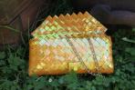 Diese Clutch ist ein absoluter Eyecatcher! Durch die gelb-goldene Farbgebung mit Metallic-Effekt sorgt für viel Aufmerksamkeit. Die Clutch hat natürlich eine goldene Trägerkette.