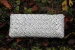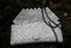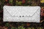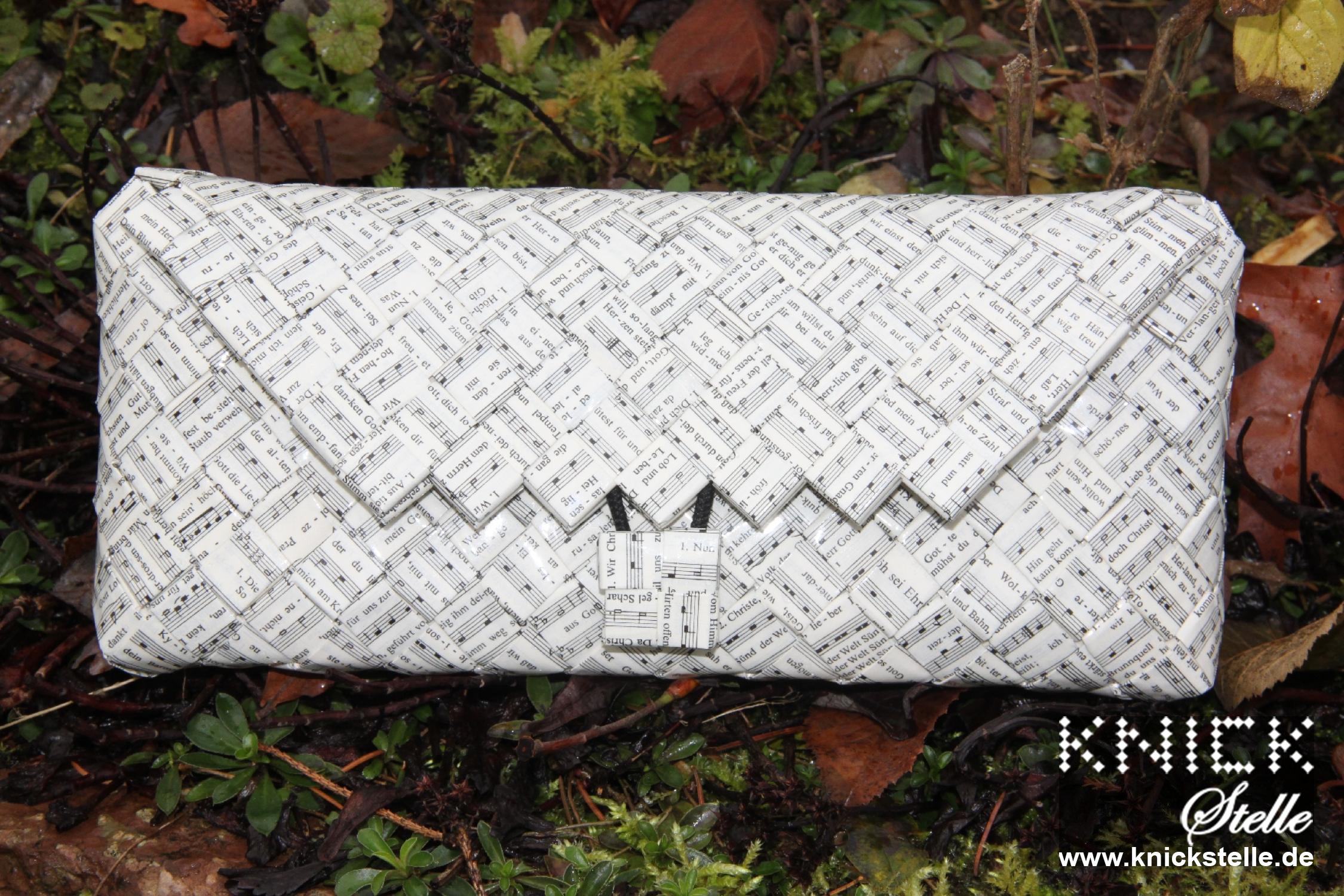 Ein Gesangbuch wurde hier zu einer Tasche verarbeitet. Noten zieren jedes einzelne Quadrat und macht sie zu einer idealen Begleiterin für Musikliebhaber und Kirchengänger. Durch die schwarz-weiße Farbkombination ist die Clutch auch sehr elegant zu kombinieren. Sie besitzt eine schwarze Trägerkette.