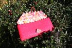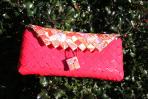Wie der Name schon verrät, stellt das gemusterte Papier sowohl Herzen, als auch Blumen in verschiedenen Variationen dar. Doch der Clue an der Tasche ist die Darstellung des Deckels auf der Rückseite, wodurch man sie auch problemlos mit dem Deckel zum Körper zu tragen kann. Besonders schön kommen bei näherer Betrachtung die verschiedenen Details im Deckel zur Geltung. Mal sind es Blümchen, mal Schnörkel und ein anderes Mal kleine Herzen. Dadurch wird man es nie statt sie trotz häufigem Tragens anzuschauen. Durch die Farbkombination eignet sich diese Clutch hervorragend um z.B. dem kurzen schwarzen einen Farbtupfer zu verleihen.