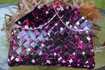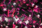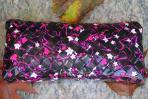 Nicht nur elegant, sondern auch feminin verspielt gibt sich diese Clutch. Auf schwarzem Grund sind hier pinke Schnörkel mit hellrosafarbenen Blümchen zu sehen. Diese Motiv macht diese Clutch schon auf den ersten Blick zum Eyecatcher. Passend zum schwarzen Hintergrund hat die Clutch eine schwarze Trägerkette und lässt sich sowohl zum Abend-, Cocktailkleid als auch zu Jeans.