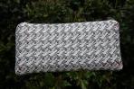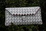 Diese Clutch ist zum Einen ganz klassisch und zum Anderen ganz individuell. Von außen hat die Clutch eine Schwarz-weiß-Kombinaiton und von Innen erstrahlt sie in Schwarz und Grün. Das unverwechselbare Muster beider Seiten lädt zu einer näheren Betrachtung ein. Wenn man genau hinschaut, kann man Außen den Namen der Stadt Iserlohn lesen. Diese Clutch unterscheidet sich von den anderen Clutches durch die Größe der einzelnen Quadrate. Diese sind bei dieser Clutch kleiner, was ihr ein feineres Muster verleiht. Trotzdem hat die Clutch die gleichen Maße wie die anderen. Da die schwarze Schrift das Muster bestimmt, hat diese Clutch einen schwarzen Träger.