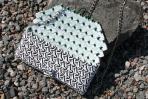 Ein wirkliches Highlight der 2013er Kollektion. Eine ganz klassische schwarz-weiß Kombination. Das sich wiederholende Schnörkelmuster verleiht der Clutch ein ganz besonderes Aussehen. Diese individuelle Clutch lässt sich sowohl elegant zu einem Abendkleid, als auch ganz leger zur Alltagskleidung kombinieren. Egal wie sie kombiniert wird, diese Clutch mit einem schwarzen Träger spricht für sich selber und wird bei jedem Anlass die Nummer 1 spielen. Doch das Spezielle an der Clutch wird erst bei einem Blick ins Innere offenbart: Augen! Wiederholt ist der Auschnitt eines Auges zu sehen. Somit wird jedes Öffnen der Tasche zu einem ganz besonderen "Augenblick".