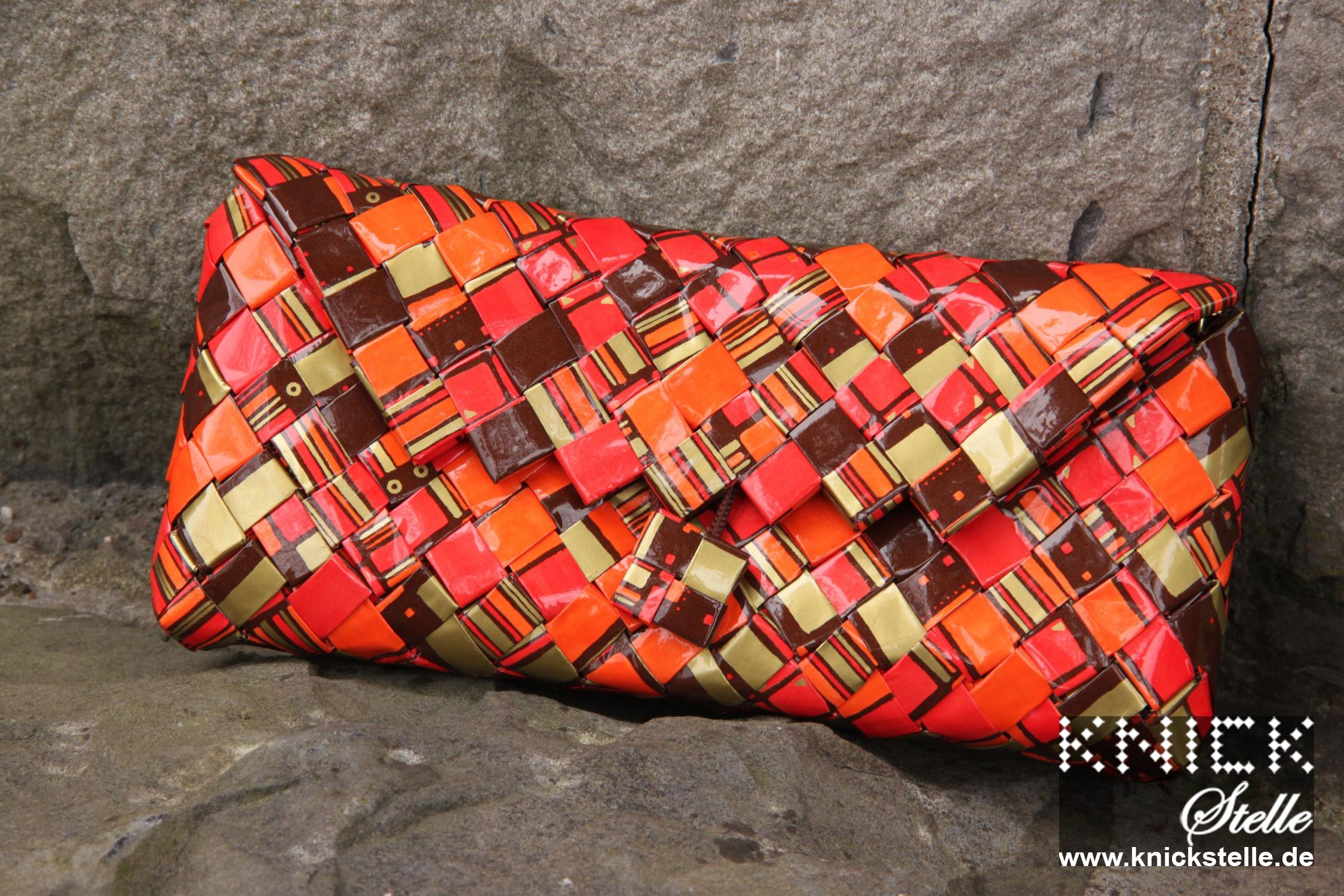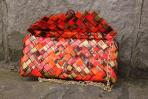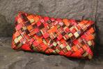 Die Farben von König der Löwen: warmes Rot und Orange kombiniert mit edlem Gold und ruhigem Braun. Welche Farbe überwiegt hängt von der Kombination ab, doch durch die warmen Farben wirkt sie zu allen warmen Tönen wie für das Outfit hergestellt. Dem Goldanteil der Clutch wird der Träger als goldene Kette gerecht.