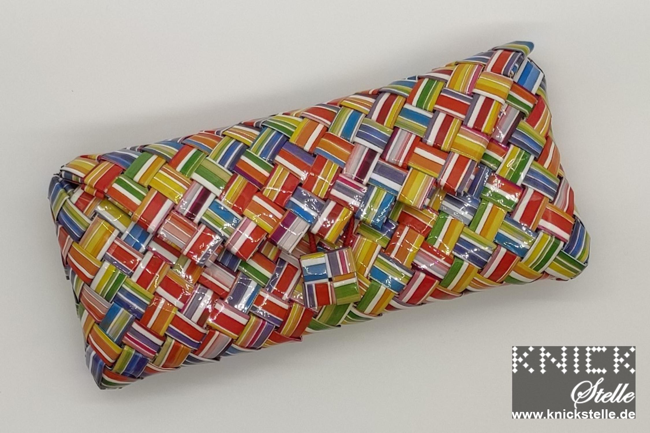 Eine kunterbunte Begleiterin, die zu jedem Outfit passt. Mit ihrer silbernen Trägerkette ist diese Clutch eine Allrounderin für jede Gelegenheit.