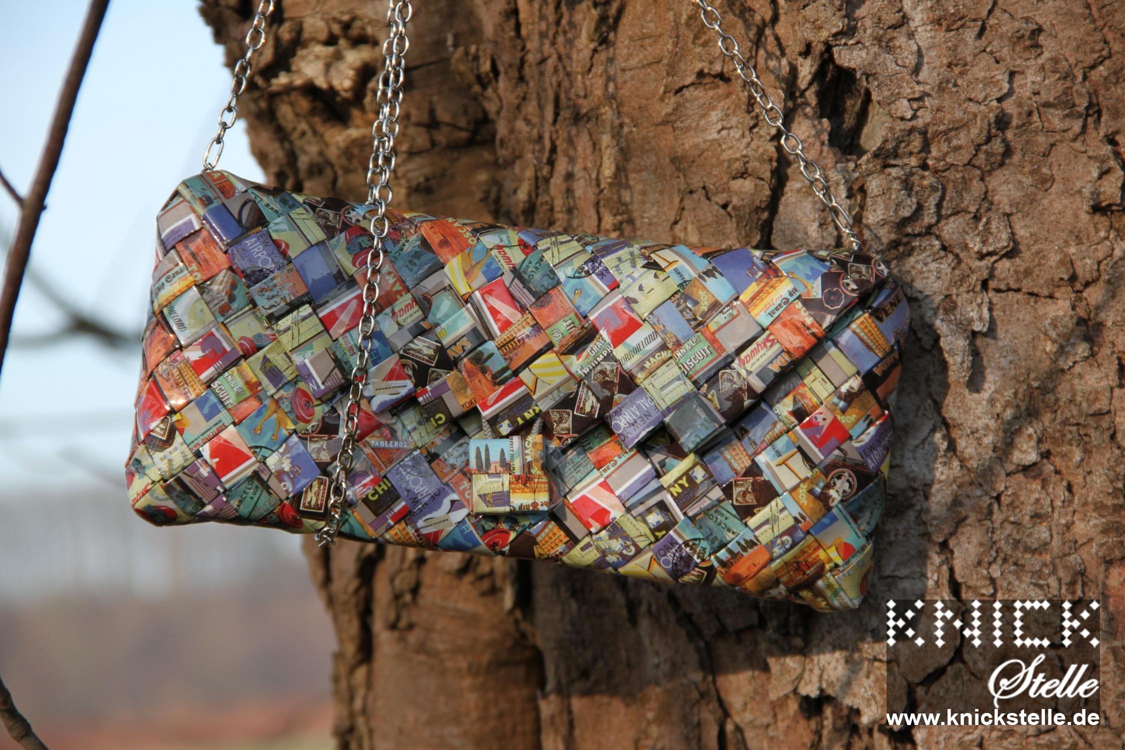 Diese Clutch ist ein echter Allrounder: Egal zu welcher Farbe getragen sie passt immer! Das Papier zeigt Ausschnitte von alten Briefmarken und Postkarten aus der ganzen Welt. Gute Augen werden dies teilweise erkennen und damit auch den Reiz dieser Clutch erfassen. Die gedeckten Töne lassen diese Clutch trotz der verschiedenen Ausschnitte sehr dezent wirken. Dadurch ist sie ein echter Allrounder. Passend zu dieser Wirkung hat sie eine silberne Trägerkette.