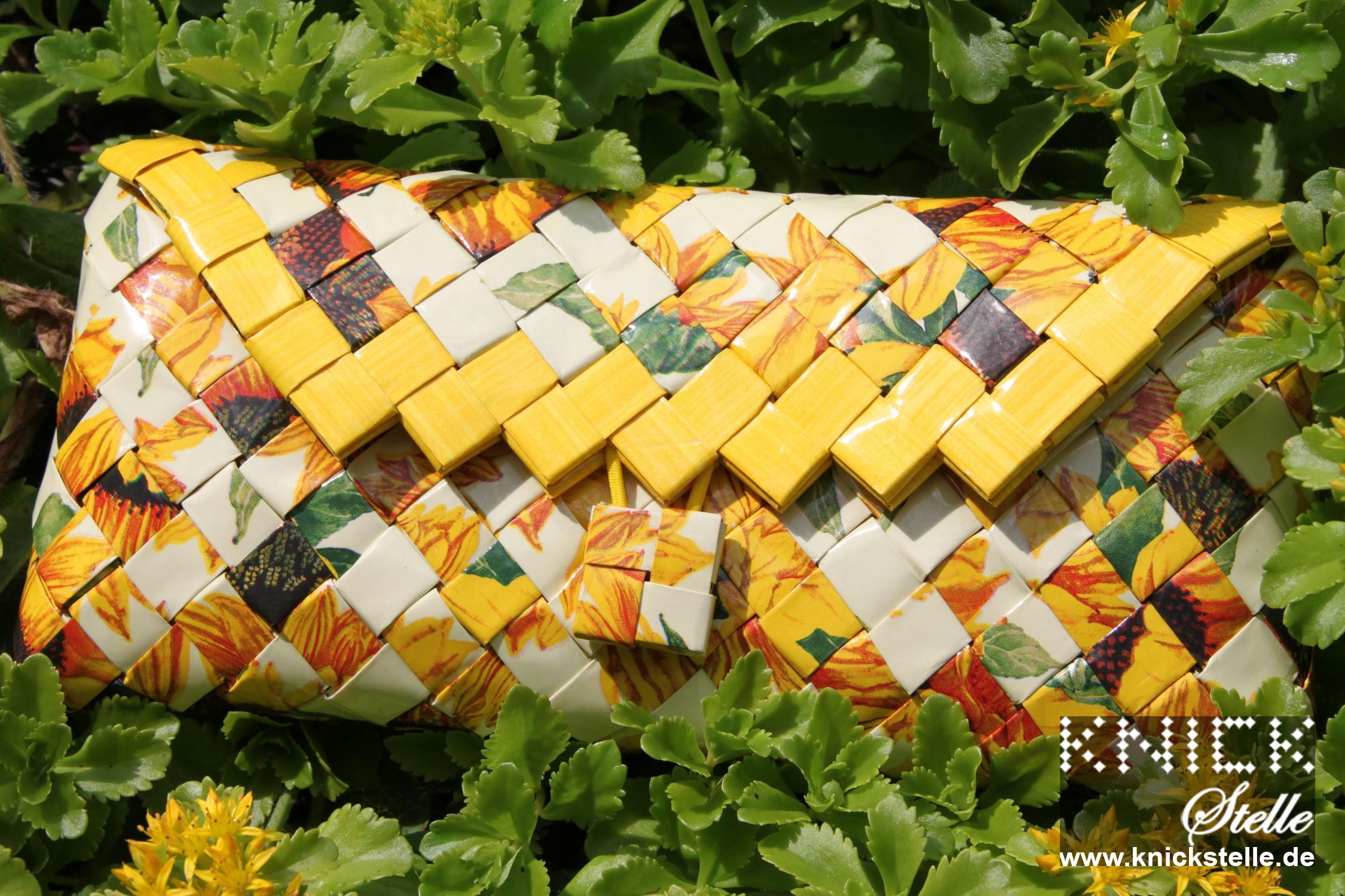 Ein Meer aus Sonnenblumen ist in dieser Clutch wieder zu finden. Dieses Motiv macht diese Clutch zu dem ultimativen Sommerbegleiter und haucht jedem Outfit einen Hauch Frische ein. Die gelbe Umrandung des Deckels unterstreicht die Form der Clutch und harmoniert mit dem warmen Gelb des Sonnenblumenmotives. Die goldene Trägerkette unterstreicht den sommerlichen Charakter der Clutch.
