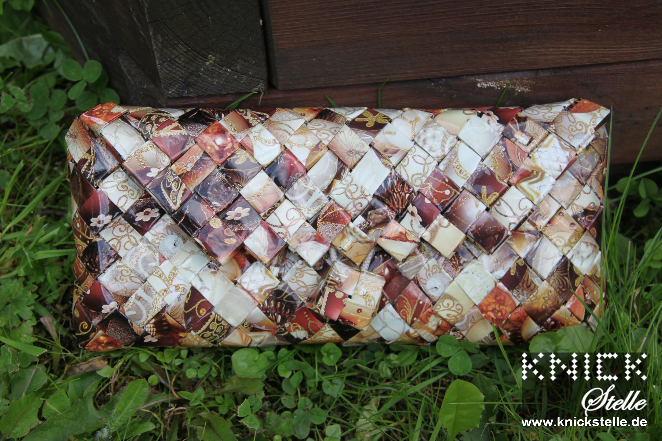 Diese überwiegend in verschiedenen Brauntönen gehaltene Clutch ist ein Augenschmaus für den Betrachter. Durch den weißen Anteil wird sie aufgehellt und die goldenen Schnörkel setzen ganz besondere Akzente. Sie verleihen der Clutch einen sehr edlen Charakter. Besonders schön sind die einzelnen Details: Blümchen, verschiedene Schnörkelmuster und Punkte. Diese Clutch ist vor allem für festliche Anlässe optimal als Begleiterin geeignet aber auch zum luftigen Sommeroutfit passt sie super. Die goldene Trägerkette harmoniert mit den goldenen Akzenten im Motiv der Clutch.