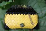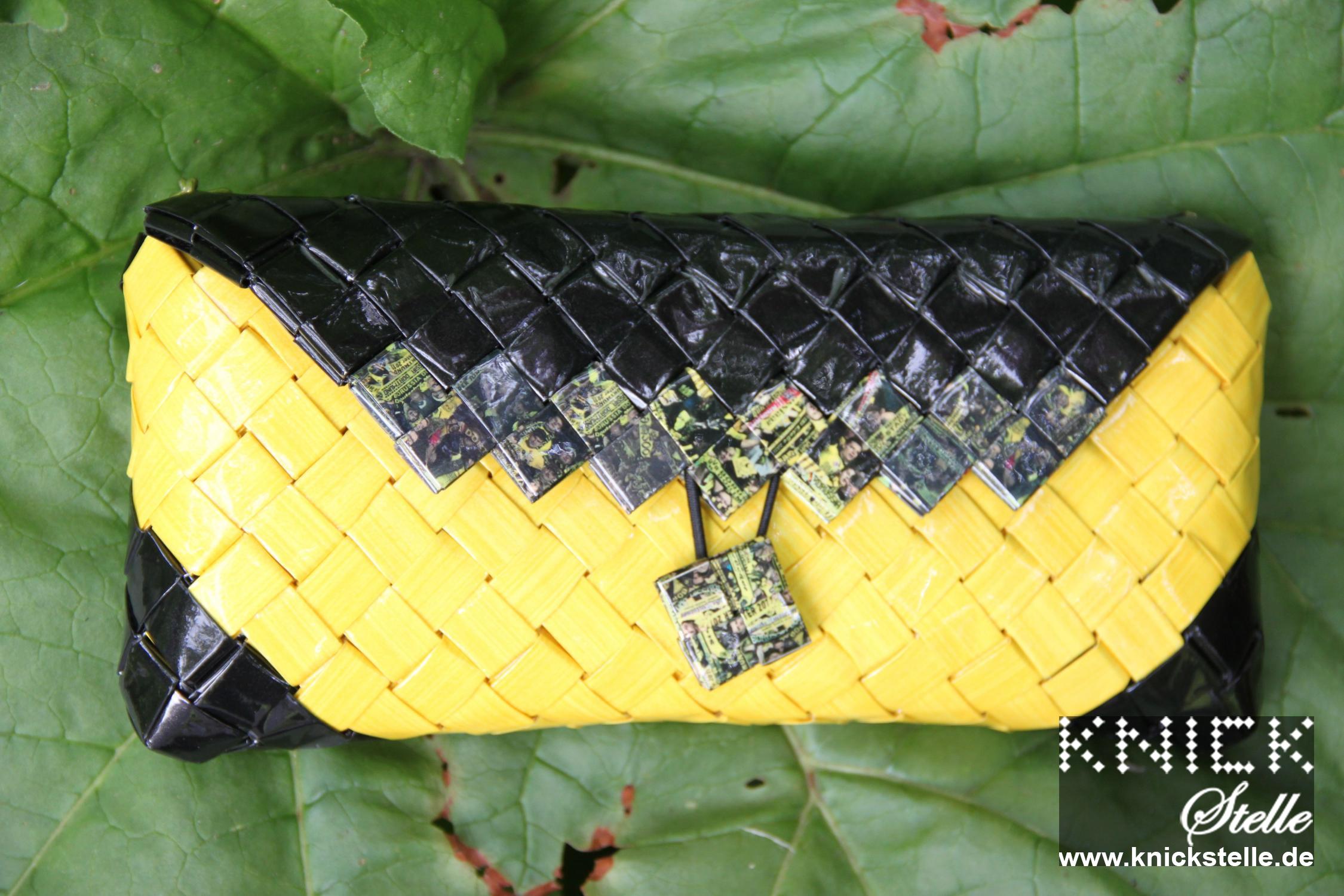 Schwarz Gelb - wer assoziiert diese Farbkombination nicht mit Dortmund?! Der gelbe Korpus der Clutch wird durch schwarze Ecken und einem passenden Deckel abgerundet. Das besondere Highlight dieser Clutch ist der Abschluss des Deckels: Hier wurde das Motiv der Südtribüne verwendet, das sich auch im Knopf wieder findet. Diese Ausschnitte machen diese Clutch zu einer wahren Fantasche, die nicht nur im Stadion eine gute Figur macht. Natürlich hat diese Clutch passend zum Schwarz eine goschwarze Trägerkette.