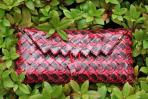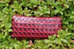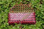 Wie der Name schon verrät wurde hier das Bild einer Rose als Motiv verwendet. Sie ist aus Flyern zum Iserlohner Event "Rosenlust" enstanden. Da mir dieses Motiv so oft zur Verfügung stand konnte ich hier durch die Wiederholung von zwei Ausschnitten ein ganz besonderes Bild erhalten. Sie wirkt sehr ruhig und ist eine ganz klassische rote Clutch. Doch das Öffnen der Clutch bietet eine große Überraschung: Das Innere ziert ein hellgrünes Schnörkelmuster auf rotem Hintergrund. Die warmen Rottöne der Clutch harmonieren mit ihrer goldenen Trägerkette.