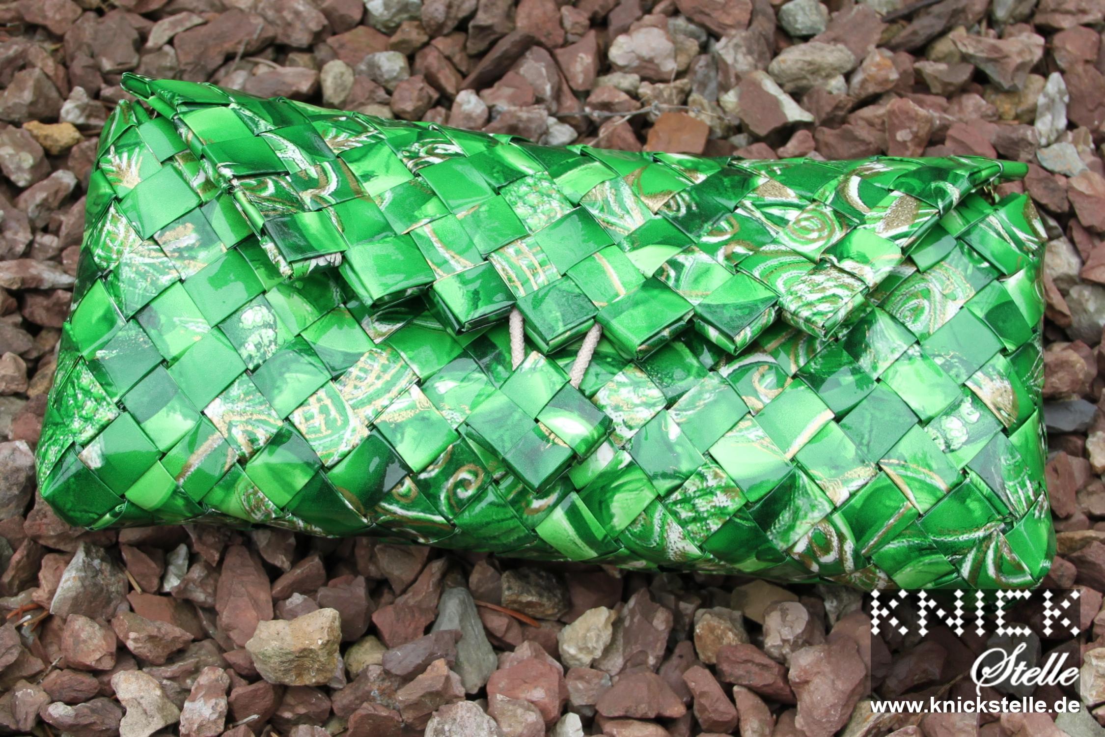 Diese Tasche erstrahlt in einem leuchtenden Grün, das zum Näherbetrachten einlädt. Die Struktur enthält einen Goldschimmer, der Eleganz ausstrahlt. Diese Tasche ist ganz gewiss keine Tasche die sich durch andere in den Hintergrund drängen lässt. Sie schreit förmlich danach näher betrachtet zu werden. Der Betrachter wird nicht glauben, dass sie aus Papier gefertigt wurde. Daher ist Ihnen die Aufmerksamkeit mit dieser Tasche als Begleiterin von Anfang an gesichert. Abgerundet wird das Ganze mit einer goldenen Trägerkette, der mit den goldenen Schnörkeln auf der Tasche harmoniert.