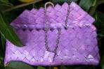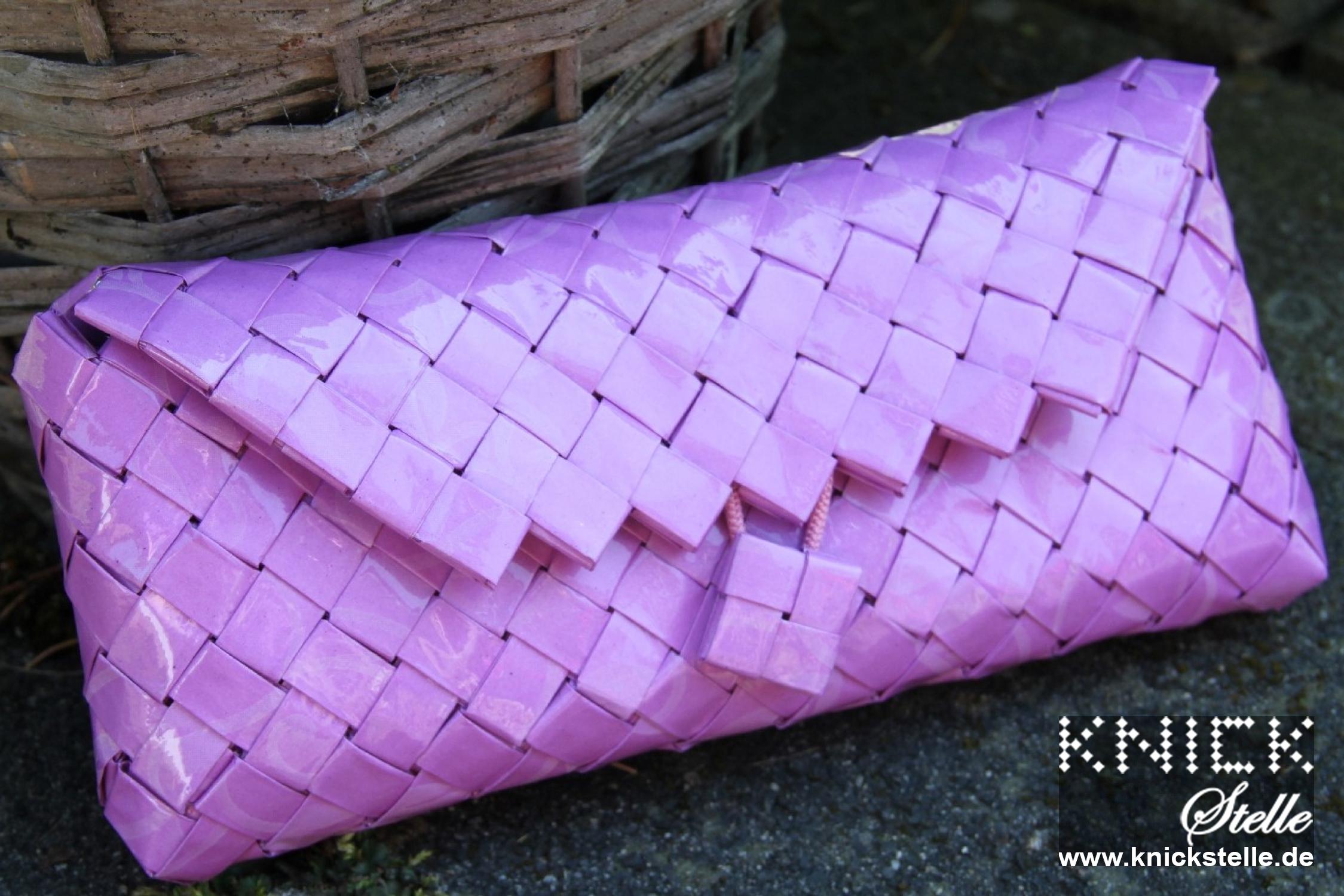 Mal rosa und mal lila wirkt diese Clutch. Daher kann Sie zu einer Vielzahl von Kleidungsstücken getragen werden. Durch die leichte Farbe wirkt sie dezent aber bestimmt. Auf dem Papier sind in hellerem Rosa bzw. Lila Ranken abgebildet, welche man bei näherer Betrachtung immernoch erkennen kann. Das Papier ist sehr dünn und führt zu einer sehr leichten und biegsamen Clutch. Passend zu ihrer hellen Farbe ist diese Clutch mit einer silbernen Trägerkette ausgestattet.