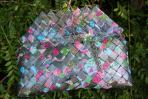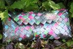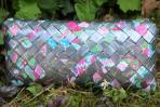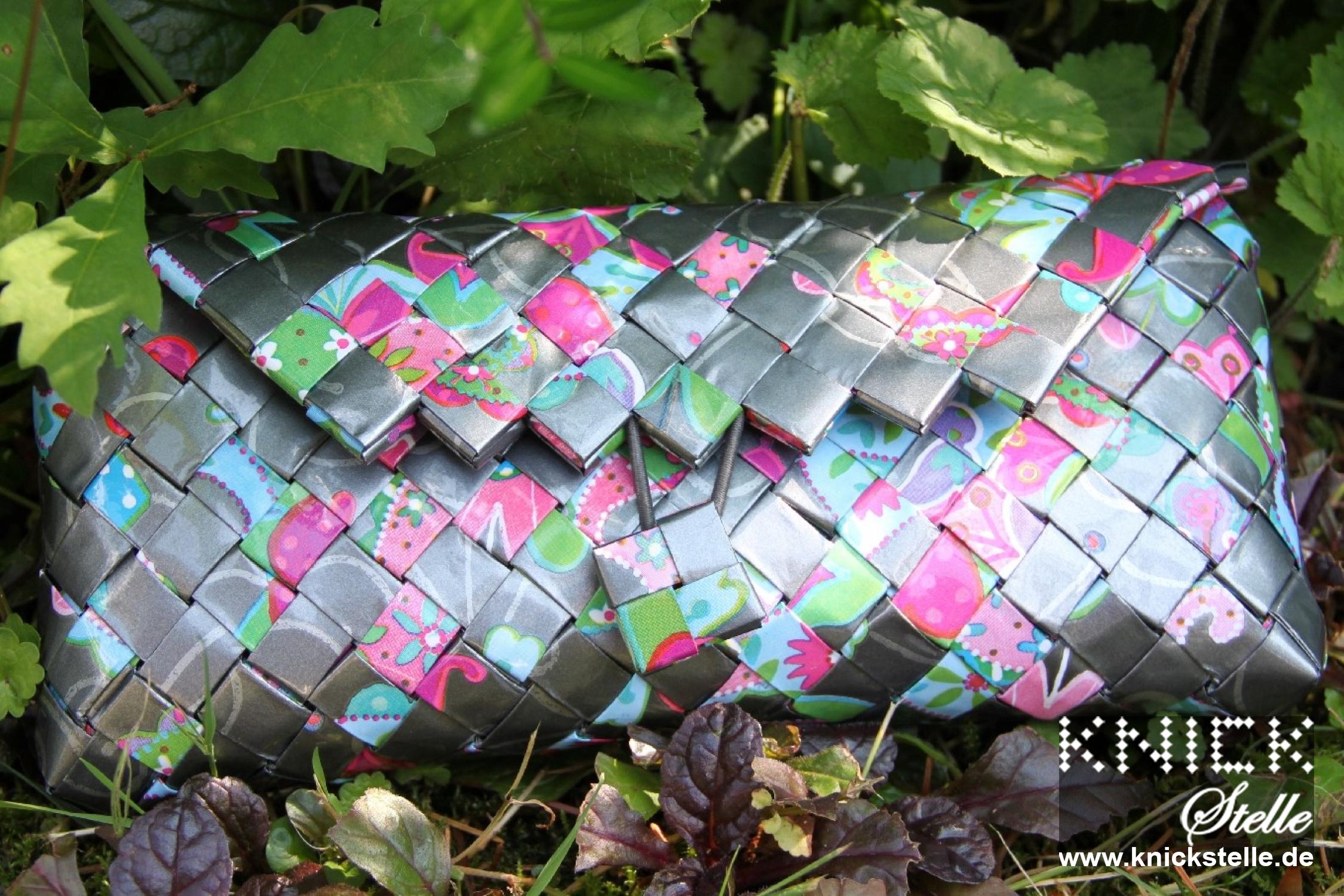 Diese Clutch vereint silberne Eleganz mit rosa Charme. Auf dem Papier waren auf dem dunklem silbernen Hintergrund rosa, türkise und grüne futuristische Blumen abgebildet. Sie ist somit die perfekte Begleiterin für elegante aber gleichzeitig etwas verspielte Outfits. Natürlich ist sie passend zum hohen Silberanteil mit einer silbernen Trägerkette versehen.