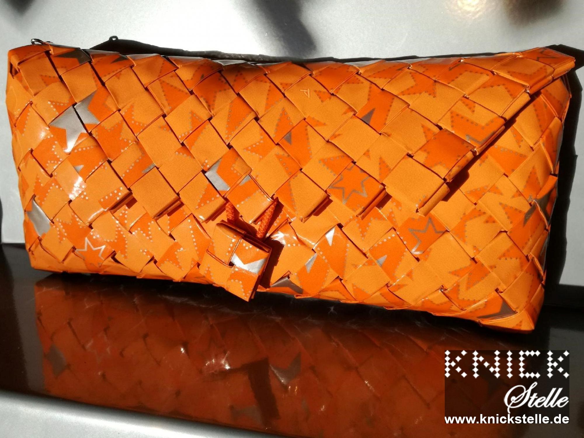 Helles Orange mit dunkel-orangenen und silbernen Sternen ziert diese Clutch, wodurch sie sich nicht nur ein Highlight zu jedem sommerlichen Outfit ist, sondern auch bei festlichen Anlässen ein absoluter Hingucker ist. Passend zu den silbernen Sternen hat sie eine silberne Trägerkette.
