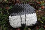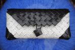 Hier wurde ein Buch mit altdeutscher Schrift zu einer Clutch verarbeitet. Es wurde eine Designvariante mit schwarz abgesetzten Ecken, Deckel und Knopf ausgewählt. Dadurch ist dies eine ganz klassische Clutch, doch durch das außergewöhnliche Material auch eine Alltagstasche.