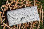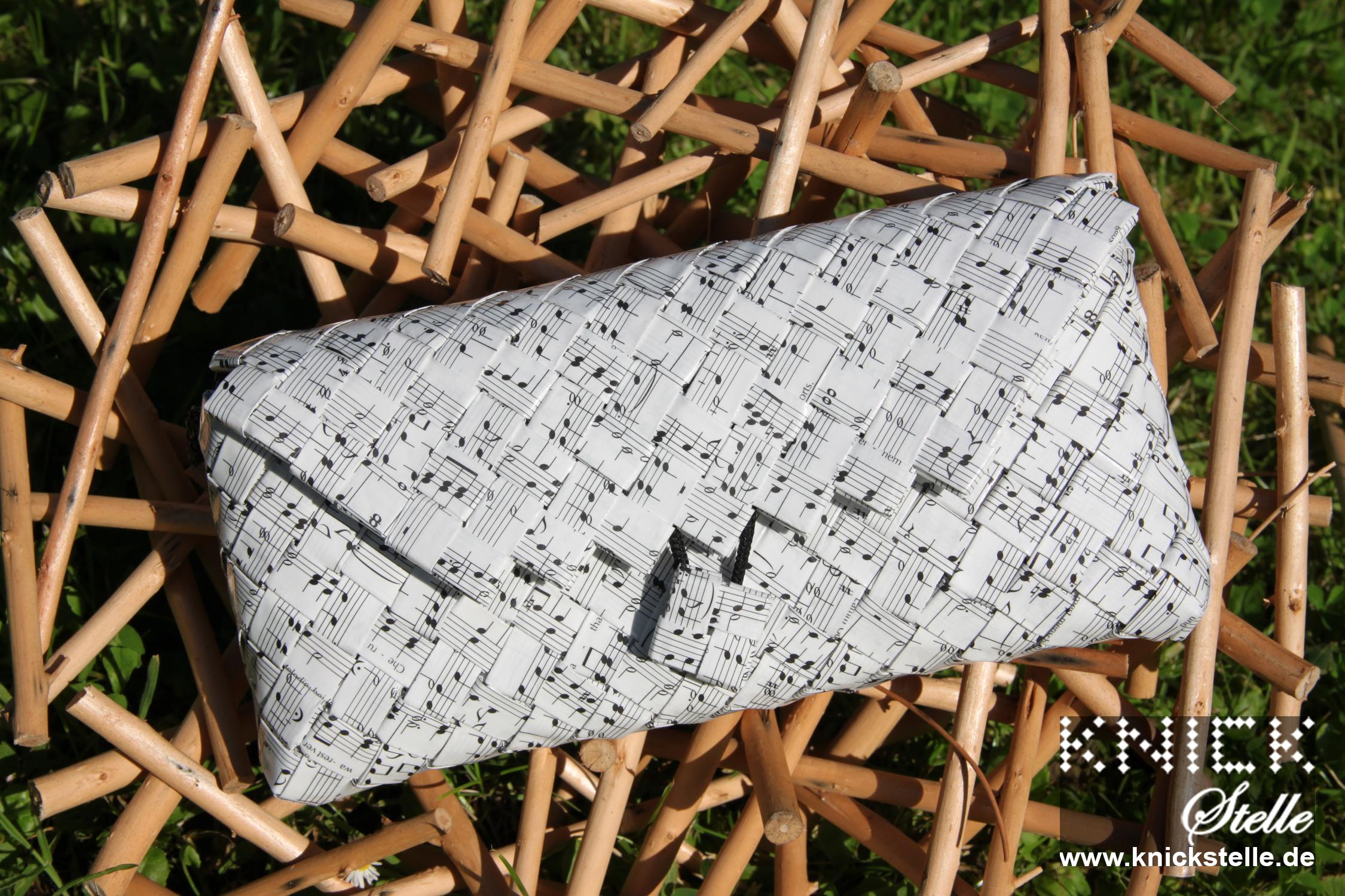 Ein Gesangbuch ist hier zu einer Clutch geworden. Nach Kundenwunsch sieht man nur die Noten und sie hat eine schwarze Trägerkette.